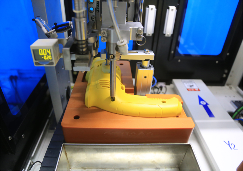 而手電鉆自動鎖螺絲機則是根據用戶的使用要求,定制好相應的設備方案后,由客戶進行最終確認后開始采購物料組裝。自動鎖螺絲機應用于產品上的螺絲擰緊,它可以準確地定位螺孔位置,然后由氣管吹送至鎖附機構后,進行螺絲擰緊動作。不僅速度快,且鎖附效率穩定。