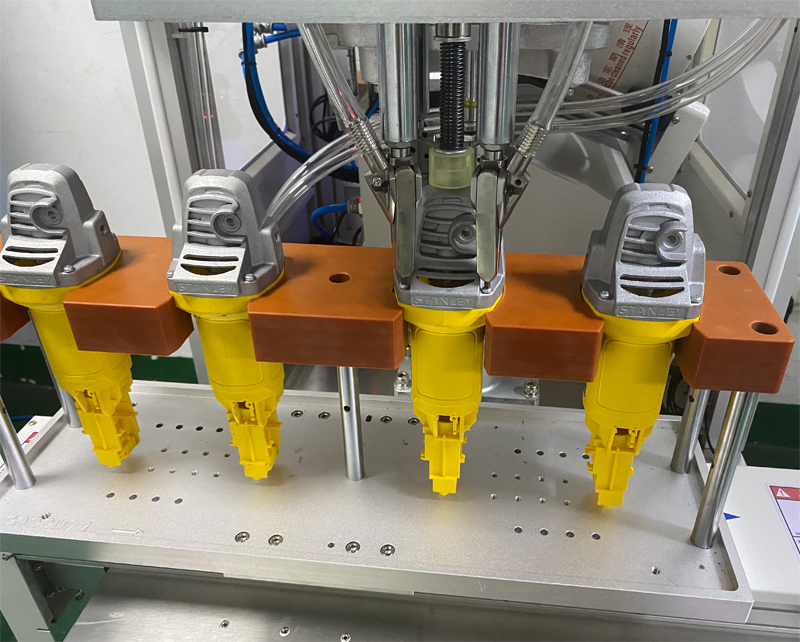精心科技根據客戶的使用要求,制定了多頭左右滑臺電動工具鎖螺絲機。它可以同時鎖附多顆產品螺絲,以左右滑動的方式進行上下料,效率更高效穩定。